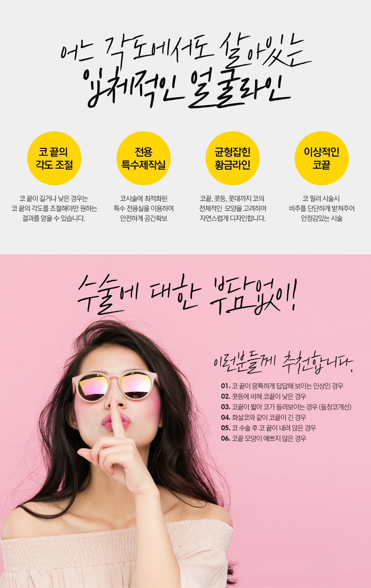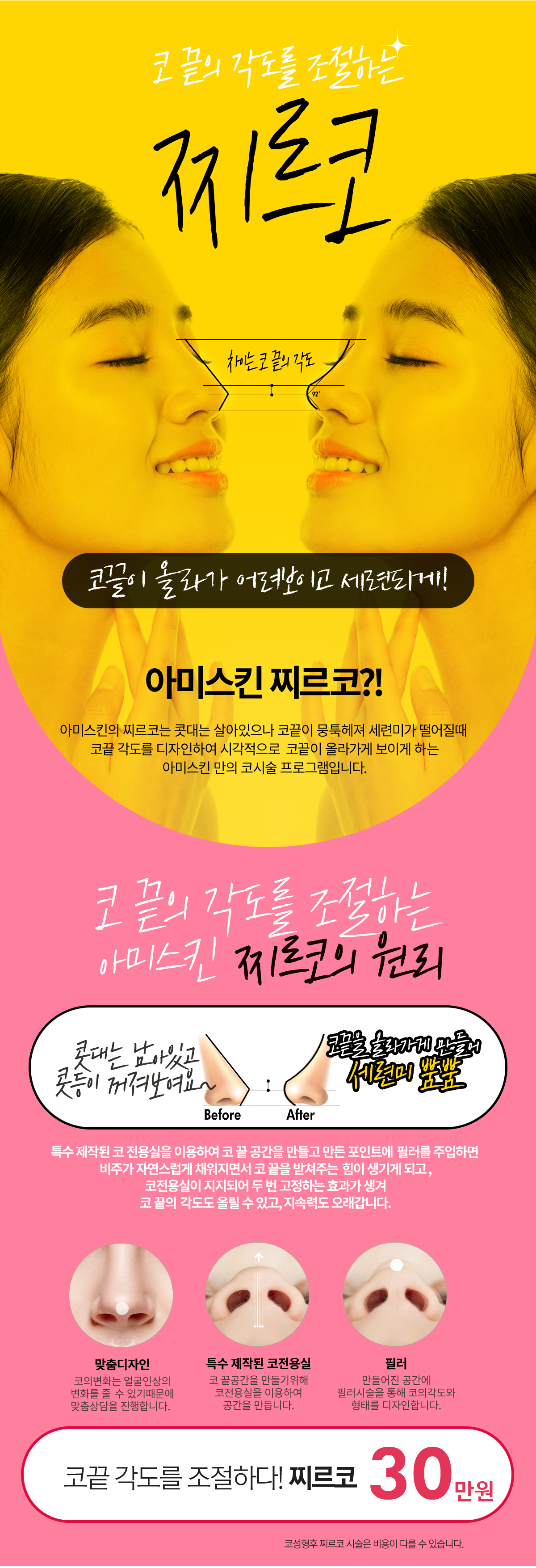 특수 제작된 코 전용실로 코끝이 올라가 어려보이고 세련되게!