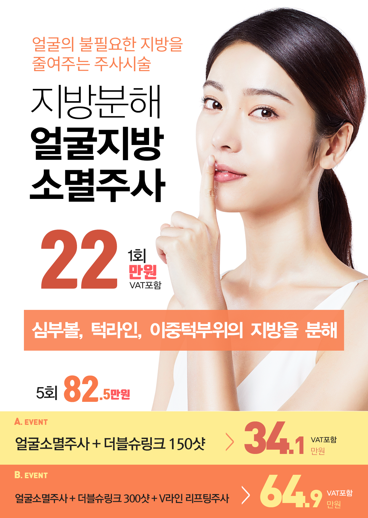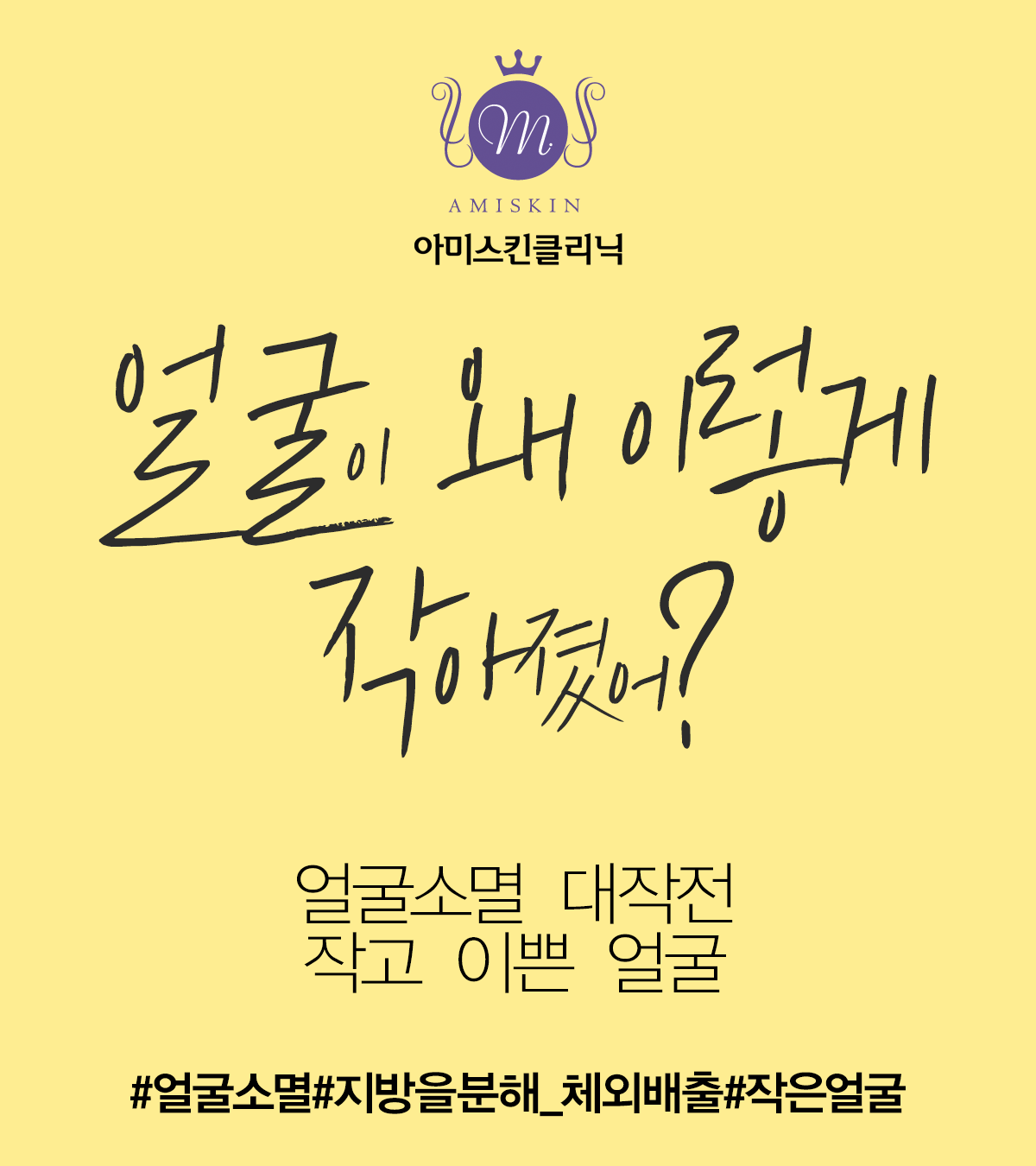 도드라진 광대를 포함한 심부볼, 턱라인, 이중턱 부위의 지방을분해, 체외 배출하여 얼굴을 날씬하고 작게 개선해주는 아미스킨 대표주사시술