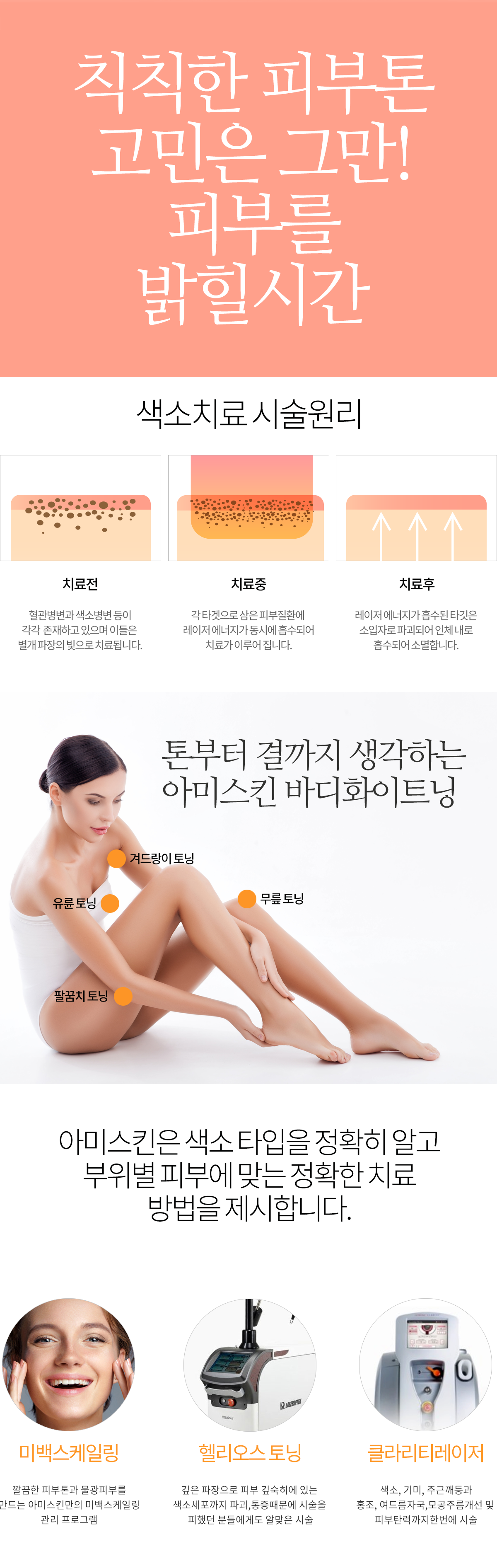 아미스킨은 색소 타입을 정확히 알고 부위별 피부에 맞는 정확한 치료 방법을 제시합니다.
