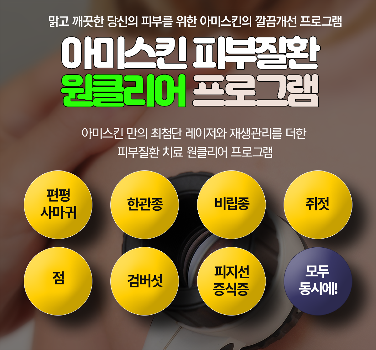 아미스킨 만의 최첨단 레이저와 재생관리를 더한 피부질환 치료 원클리어 프로그램
