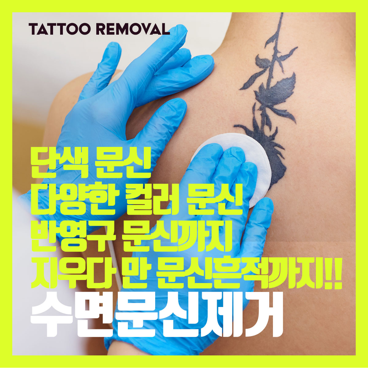 단색 문신, 다양한 컬러 문신, 반영구문신, 지우다 만 문신흔적까지!