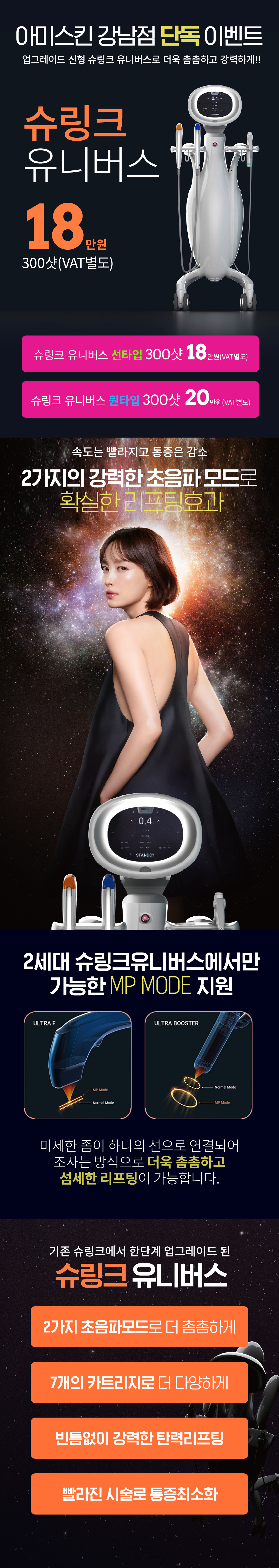 2가지의 강력한 초음파 슈링크유니버스