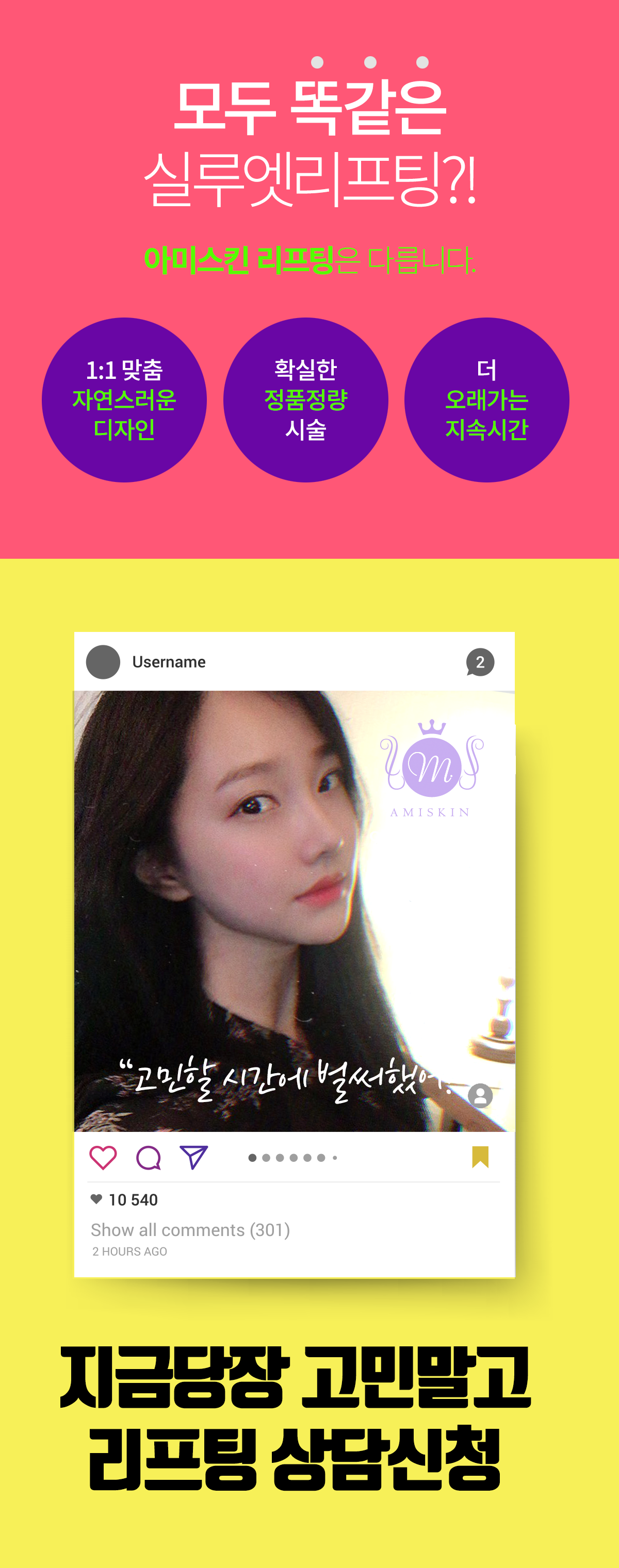 아미스킨의원은(는) 상기 범위 내에서 보다 풍부한 서비스를 제공하기 위해 이용자의 자의에 의한 추가 정보를 수집합니다.